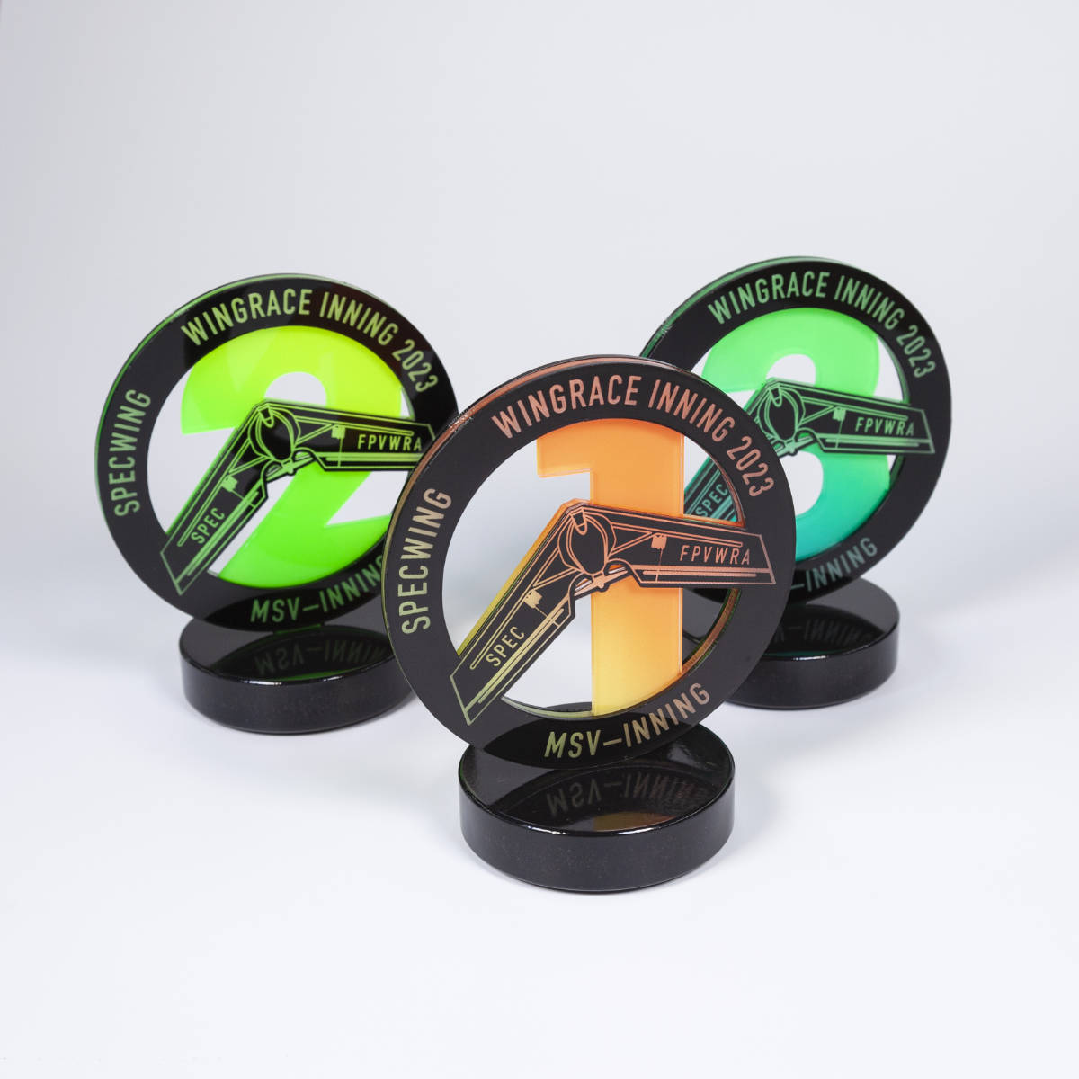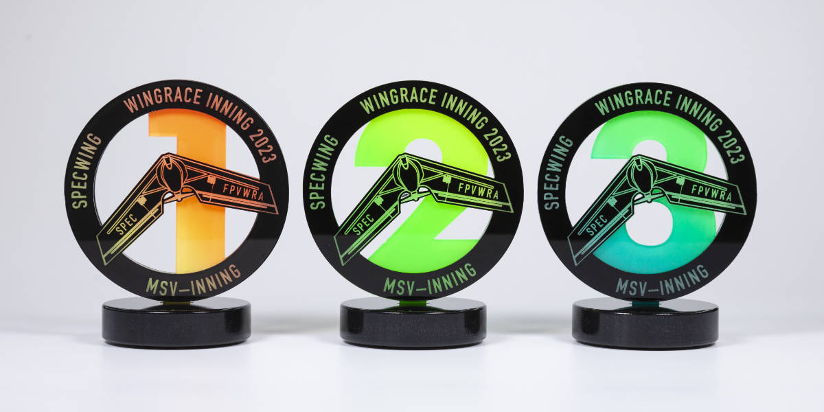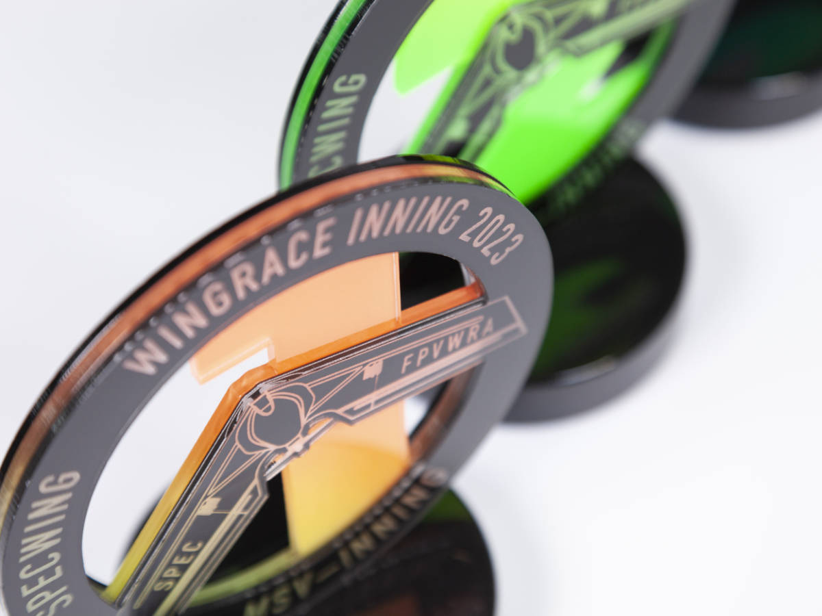 Es geht auch mit kleinem Budget – Die Pokale für ein FPV-Wingrace zeigen, dass man auch mit einfachen Mitteln hochwertige und individuelle Ergebnisse gestalten und produzieren kann. Kosteneffizient, aber dennoch mit Stil und gestalterischem Anspruch.